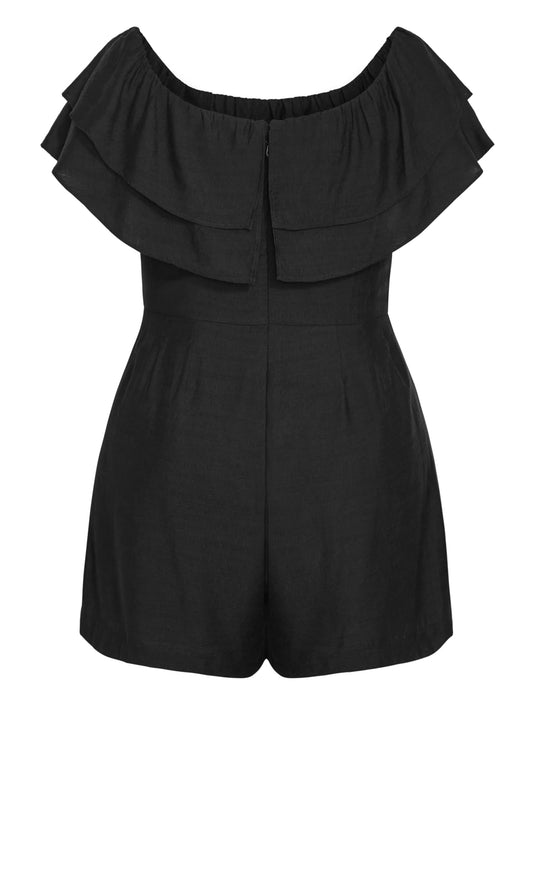 City Chic Women's Plus Size Playsuit-Poppy Off Shoulder, Black, 14