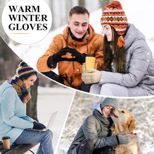 Loiyadn Winter Gloves Women - Gloves for Cold Weather Thermal Womens Glove Touch Screen Elastic Vertical Stripe Fleece Liner Knit Glove for Women Men - Beige 1 Pack