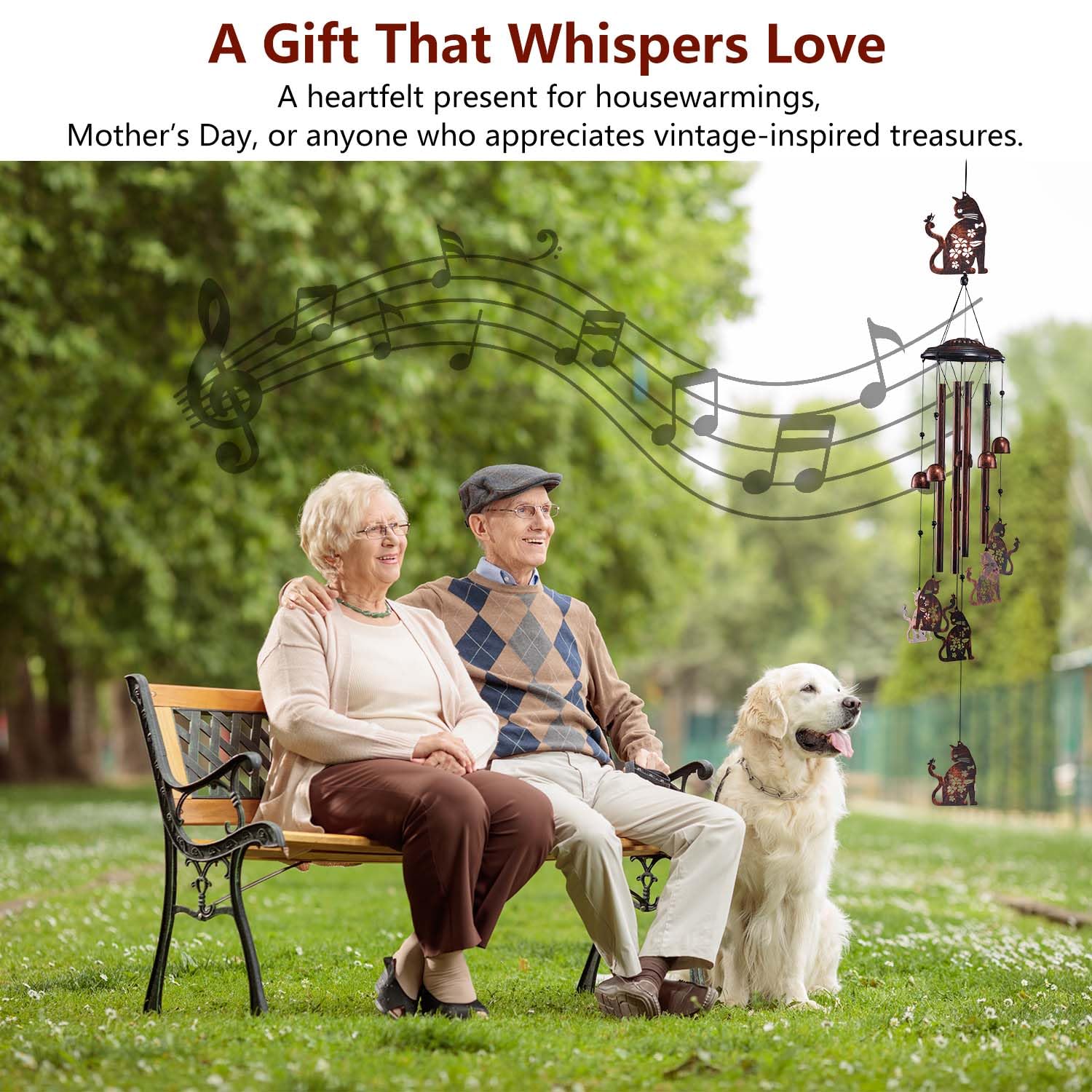 Cat Wind Chimes for Outside, Metal Windchimes Outdoors Clearance with 4 Aluminum Tubes, Garden Patio Yard Home Decor, Cat Gifts for Pet Lovers Women Men Mom Grandma, Unique Festival Birthday Gift