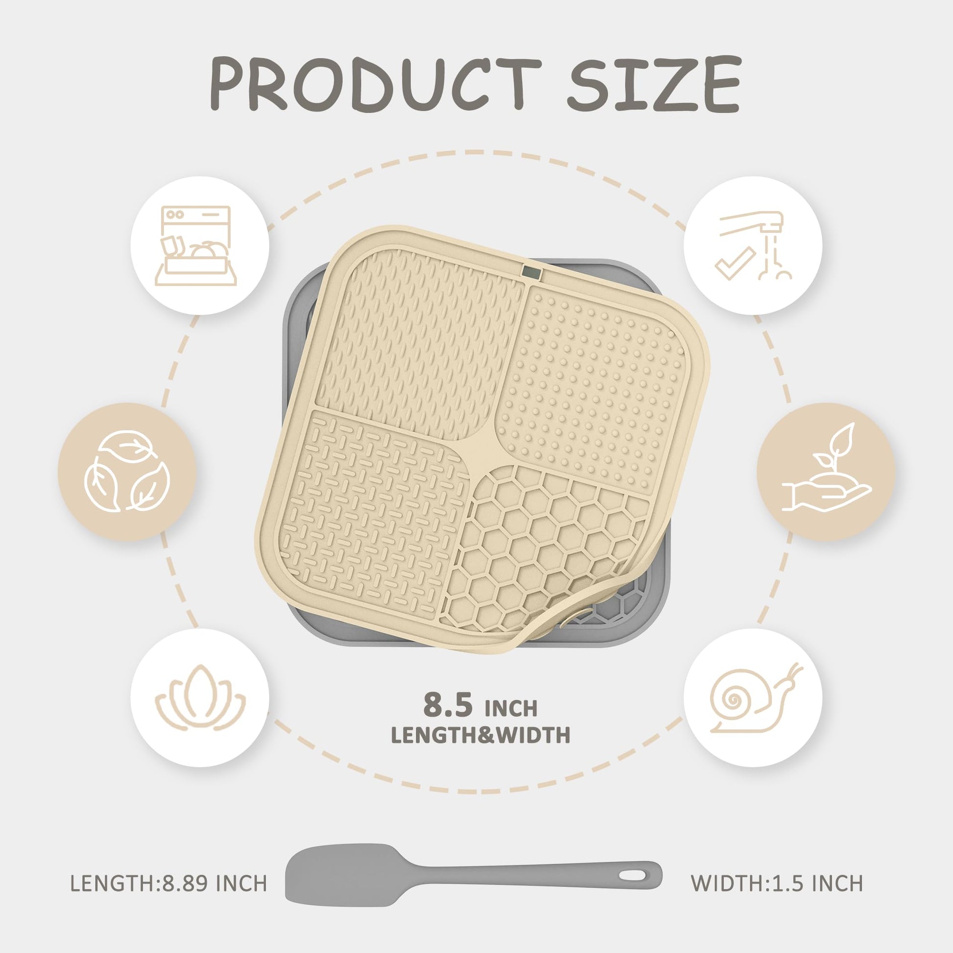 - Food-Grade Silicone:Our lick mat is crafted from premium food-grade silicone, 100% BPA-Free and Non-Toxic. 4 different textured surface design is perfect for yogurt, peanut butter, and other spreadable treats