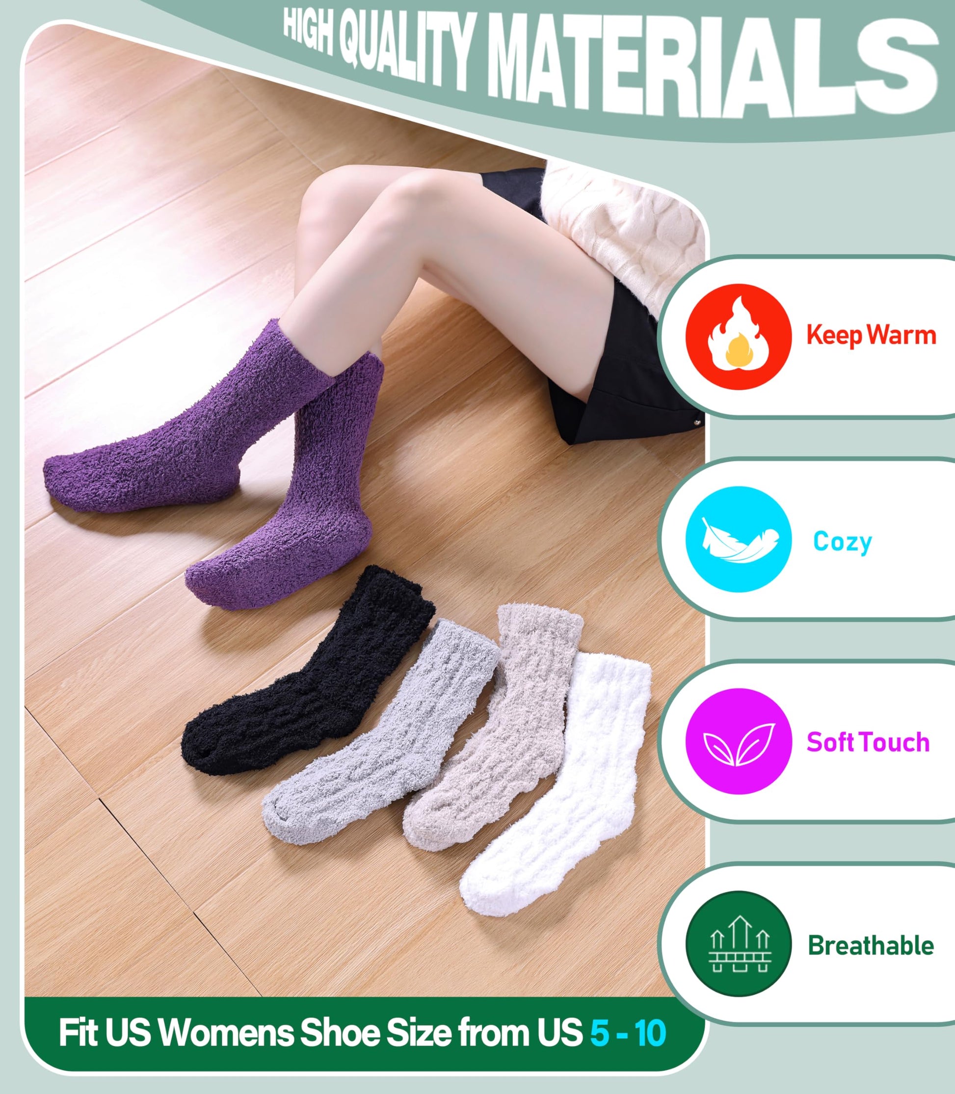 - HIGH QUALITY MATERIAL FUZZY SOCKS - These fuzzy socks for women are made from high-quality fabric, featuring super soft coral velvet materials that provide a relaxing and comfortable feel. It's very breathable and cozy for all-day foot wear, smooth seam and high elastic cuff design, soft touch and comfortable feel.
