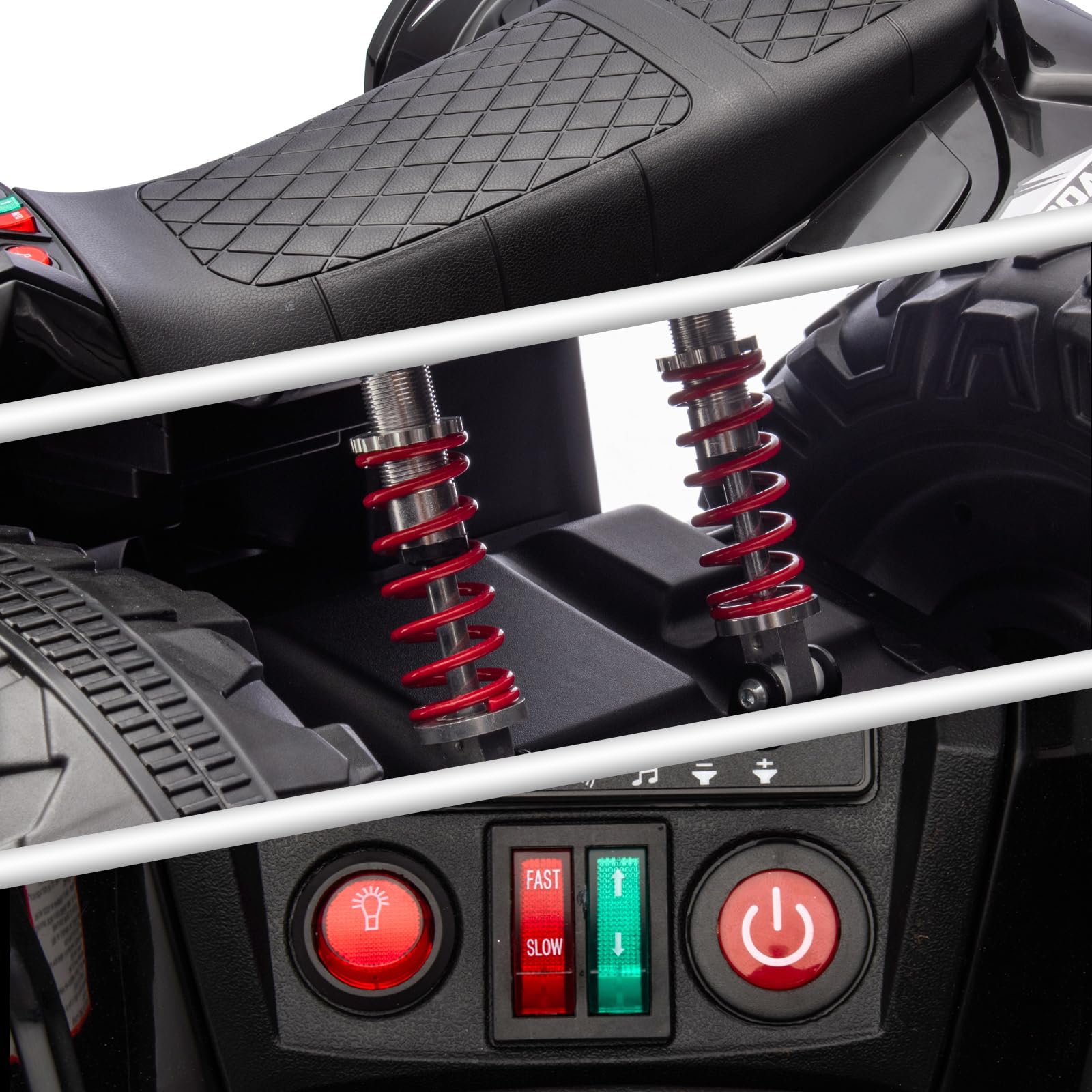 - [Enhanced Safety & All-Terrain Features] Certified with ASTM safety standards, the ATV includes anti-slip, explosion-proof wheels, soft start and braking system, knee pads, and a shock absorption suspension system. These ensure smooth riding over various surfaces and maximum child protection for safe playtime.