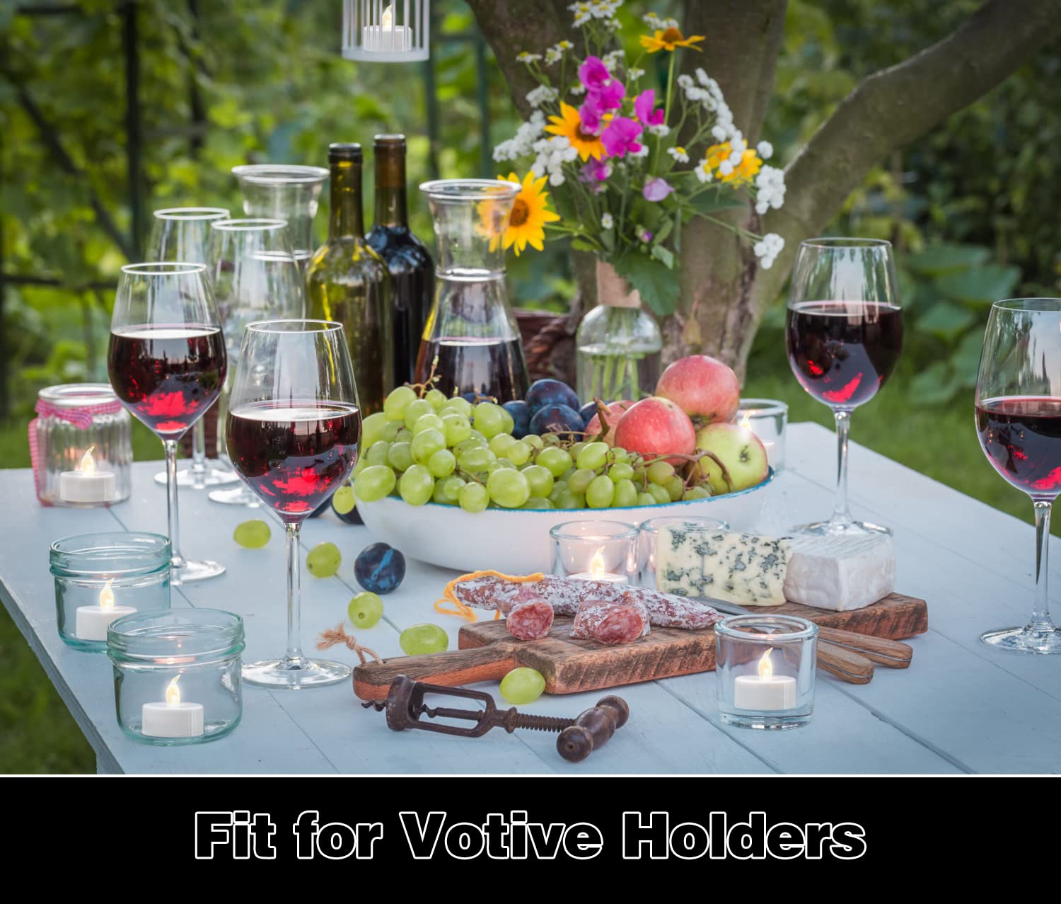 - 【Easy to Use】- ON/OFF switch on the bottom, easy to turn it on. The size(1.4in diameter) is the same as a votive candle, easy to put them on the votive holders.