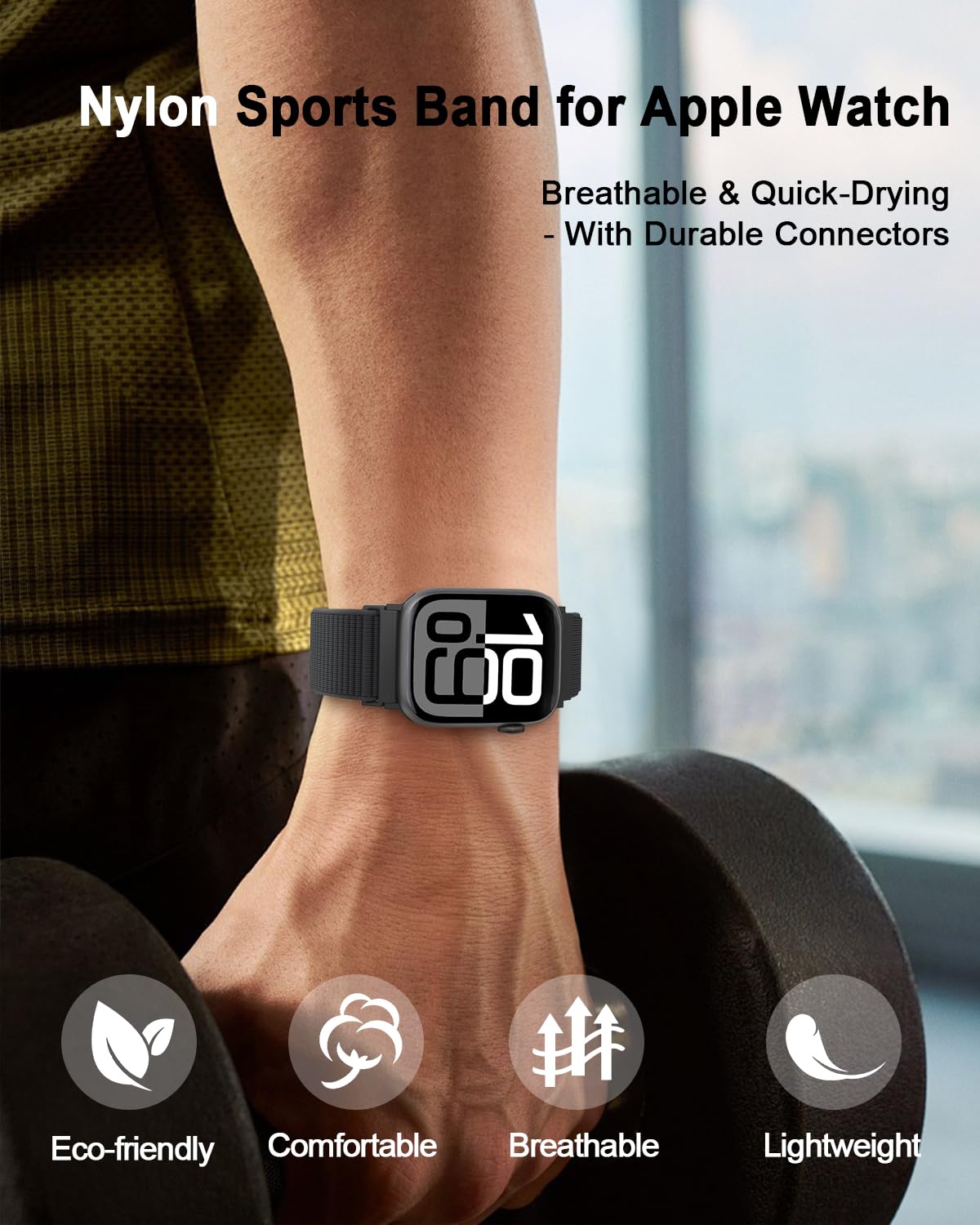 Nylon Loop Sport Band Compatible with Apple Watch Bands 49mm 46mm 45mm 44mm 42mm 41mm 40mm 38mm for Men Women, Soft Nylon Sport Strap Wristbands for iWatch Series 11 10 9 8 7 6 5 4 3 2 1 SE Ultra