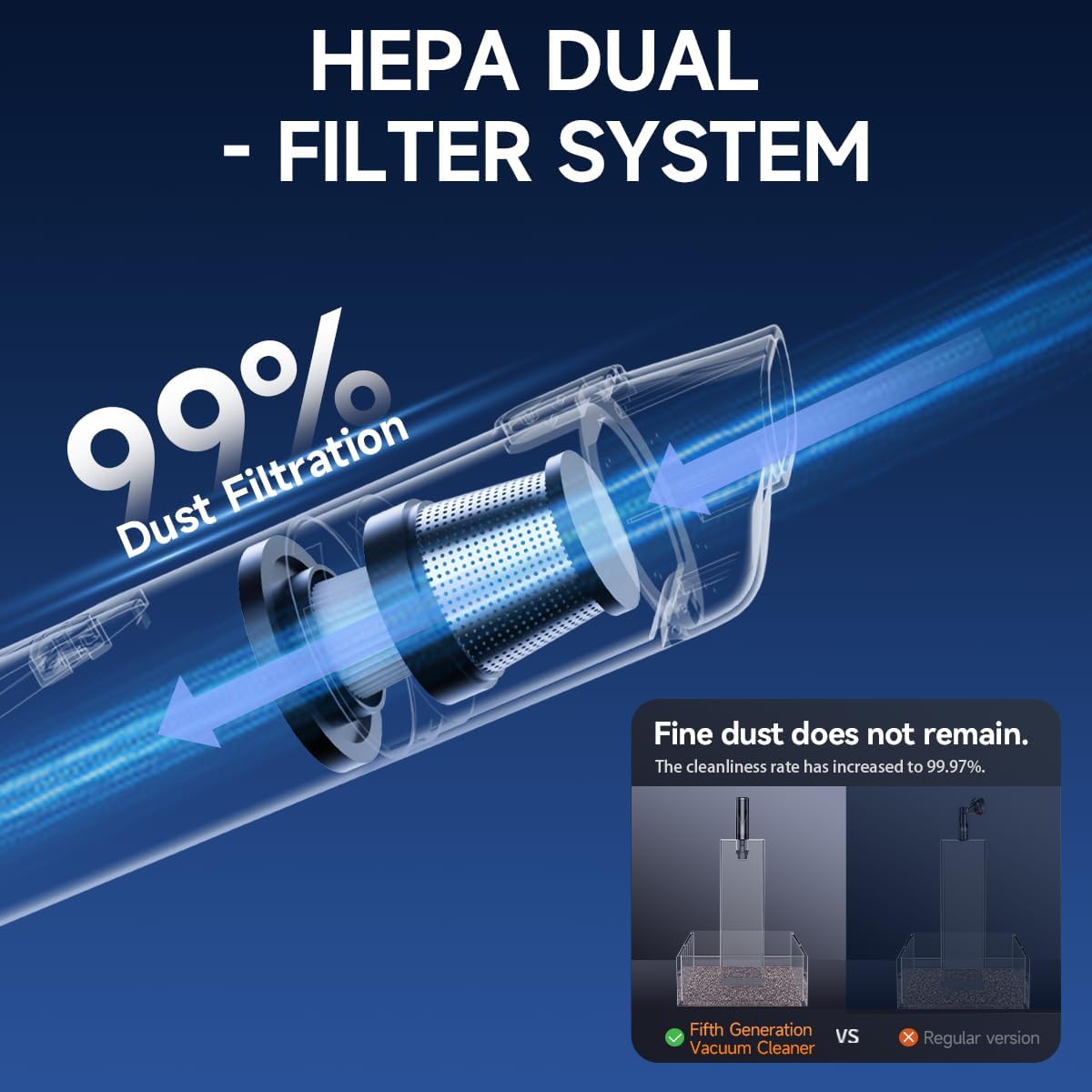 - 99% Dust Filtration & Smart Tech:Boasts 99% dust filtration, leaving no fine dust behind and increasing the cleanliness rate to 99.97%. Featuring smart tech, this handheld car vacuum ensures efficient and thorough cleaning, making it an all - in - one cleaning solution with powerful suction and wireless convenience