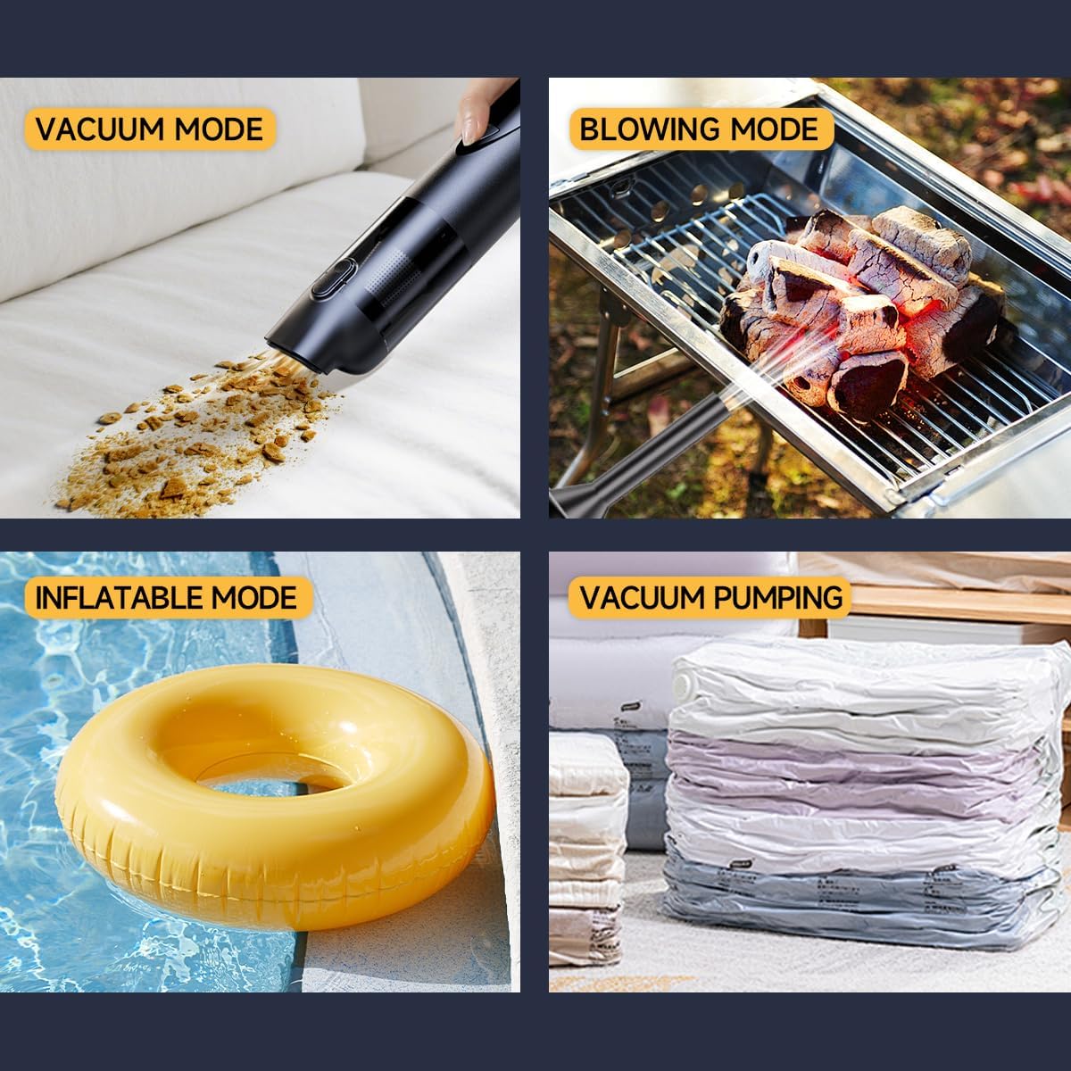 - 20000Pa Strong Suction & Versatile Modes:Equipped with a brushless motor and bionic blue whale design, this cordless car vacuum delivers up to 20000Pa powerful suction. It features adjustable three modes to easily tackle dust, paper, hair, earth, pet food, etc. Also supports vacuum, blowing, inflatable, and vacuum pumping modes for various scenarios like car, home, and outdoor cleaning