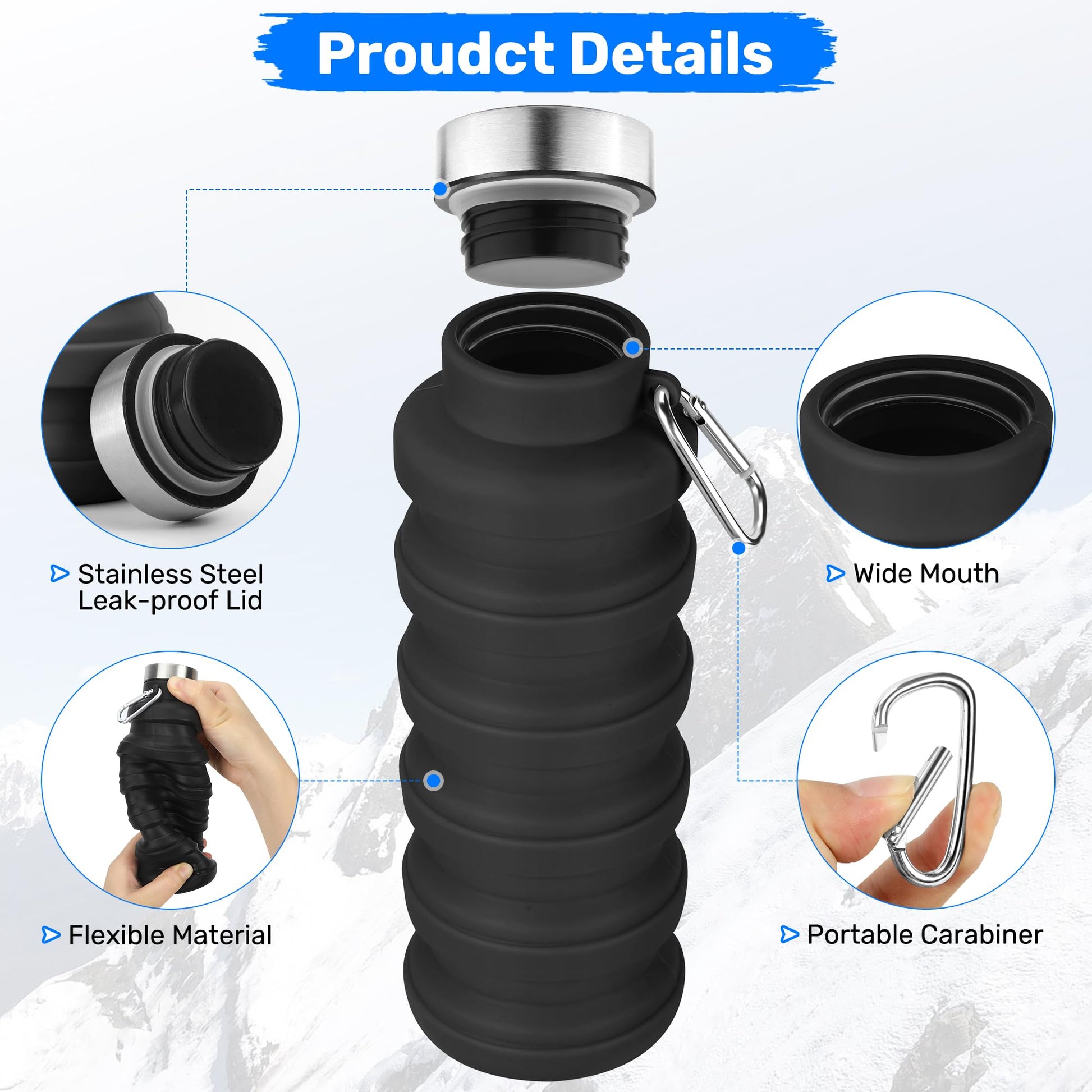 - LEAK-PROOF AND EASY TO CLEAN: The cup lid is made of stainless steel with silicone seal ring. The use of these materials ensures that this foldable water bottle is leakproof, further improving its utility. The wide mouth design of the bottle makes it easier to clean.