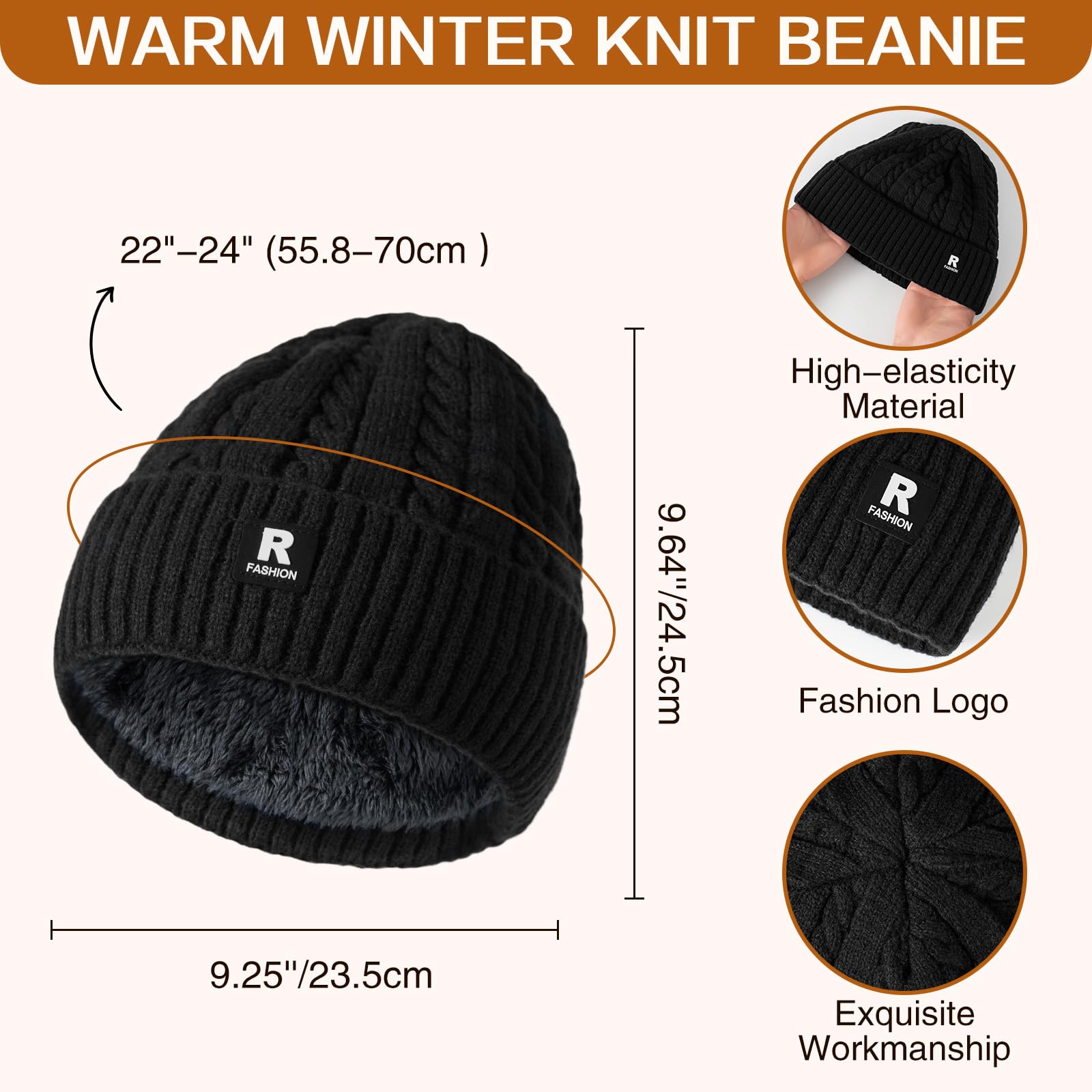 - Suitable Unisex Suit: One size fits various head shapes and hand sizes, and it's easy to wear or take off. The winter hat and gloves have good elasticity and fits most people. The thermal scarf for men provides excellent warmth for your neck and be designed with classic cable pattern, allowing you to create a unique look. They have enough elasticity and snug fitting to make you stretch freely and comfortable to wear.