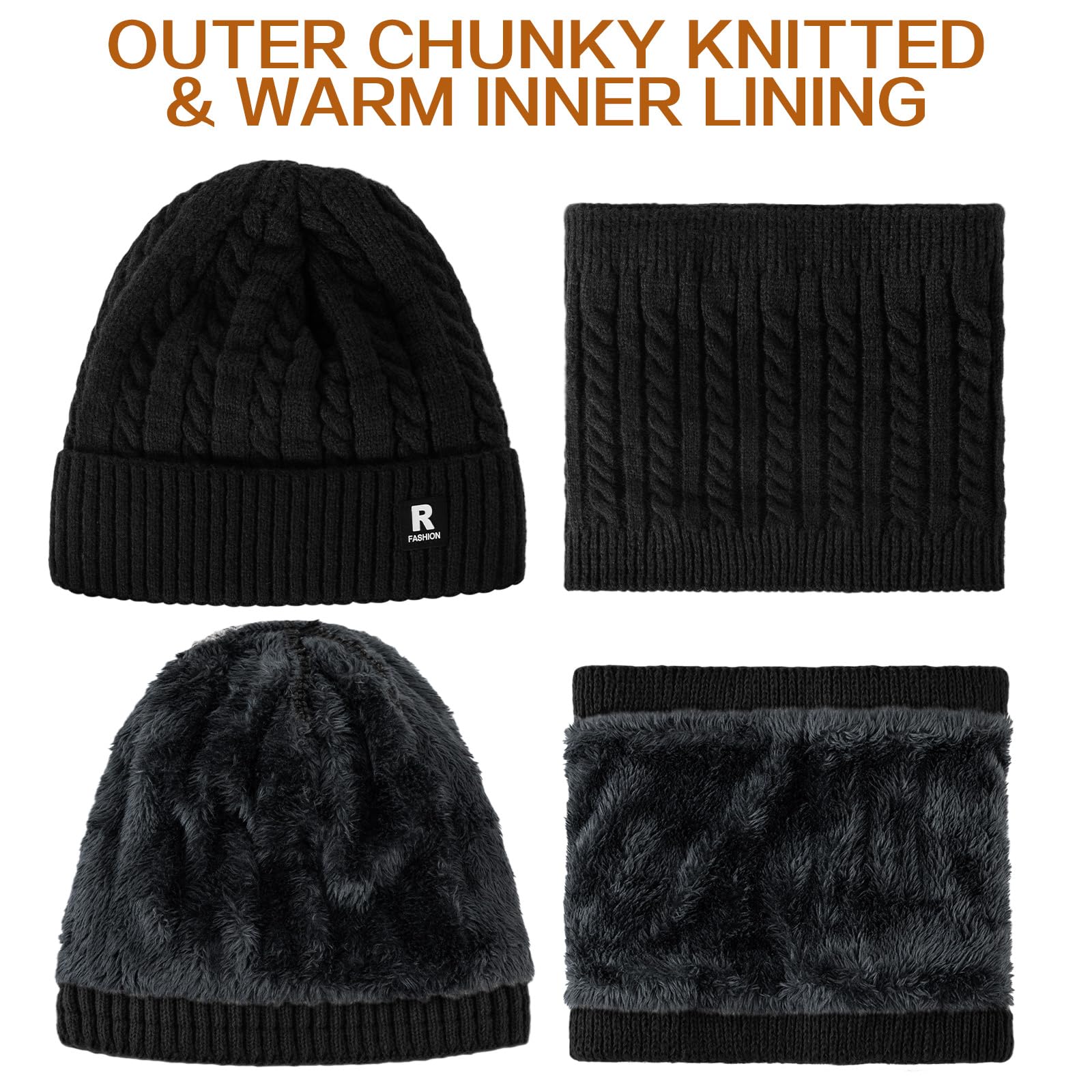 - Top-quality Fabric: The mens winter hat, knit neck warmer and gloves set are made from 100% high-quality alpaca fiber and polyester. The inner of the beanie, scarf and gloves for women is lined with thermal fleece, which provides soft skin touch, breathability and warmth. This 3 in 1 winter sets for men offers all-around protection for you in cold weather. A must-have winter accessory set for ultimate warmth.
